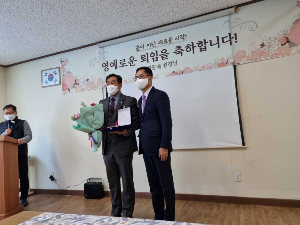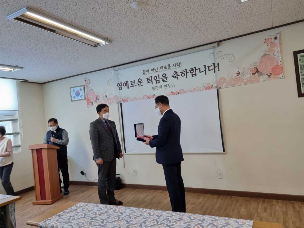 12/29 고창군노인요양원 원장 퇴임식 작성일2023.01.26 조회수1,318 작성자한국장로교복지재단 본문 2022년 12월 29일 고창군노인요양원 정준배 원장 퇴임식에 법인을 대표해서 정신천 사무총장이 그동안의 노고를 치하하는 대표이사의 표창패를 수여하였습니다.