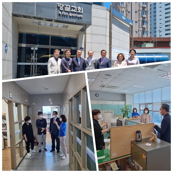 운영협력 땅끝교회 안맹환 목사님과 노인복지센터 시설장 김남규 장로님 등 관계자와의 간담하고