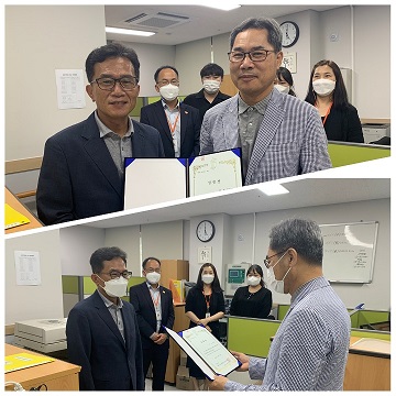 이에 업무 인수인계 서류 확인 및 대표이사님을 대신하여 법인 사무총장의 임명장 전달이 있었습니다.