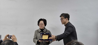 12월 26일 애란원 종무식 석상에서 정년 은퇴하는 강영실 원장에게 법인의 공로패가 수여되었다.