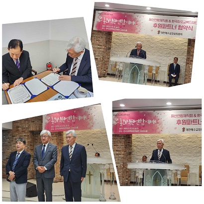 법인 임원과 용산연합제직회 임원(회장 김선범 장로, 부회장 서봉진 장로, 감사 정태훈 장로)이 참석한 가운데 양 기관 대표들이 협약서에 서명하였다.