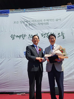 밤밭노인복지관10주년을 맞는 기념행사 석상에서 지난 10년 동안 시설운영에 크게 기여한 수원성교회 원로 안광수 목사를 명예관장으로 위촉하는 순서를 가졌다.