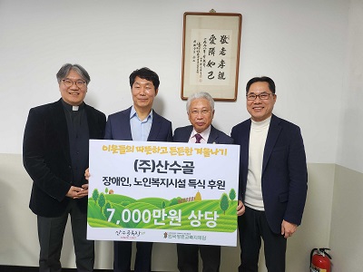농업협동조합 (주)산수골이 법인 산하시설에 '특식'으로 7천만원 상당의 식품을 후원하였다.