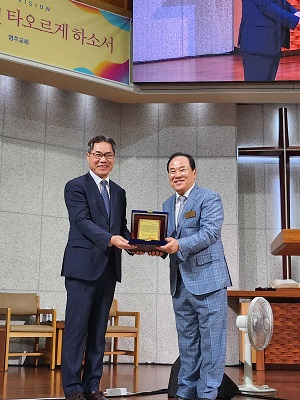 갈월종합사회복지관과 데이케어센터 운영에 협력해 주셨던 영주교회(당회장 이상협 목사)와 운영에 많은 도움을 주신 조중현 장로(영주교회)에게 영주교회 2부 예배 석상에서 법인의 감사패를 전달하는 순서를 가졌다.