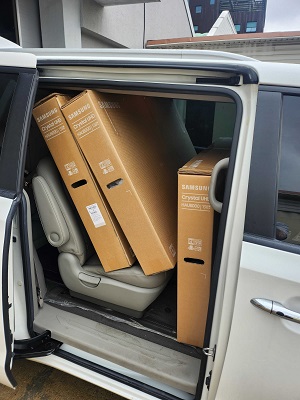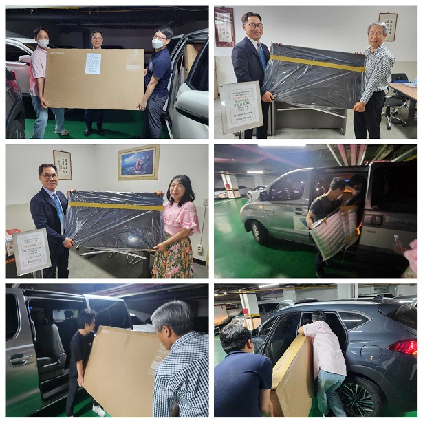 우리 법인은 55인치 4대, 46인치 2대를 배분받아 신청한 시설에 전달하였습니다.