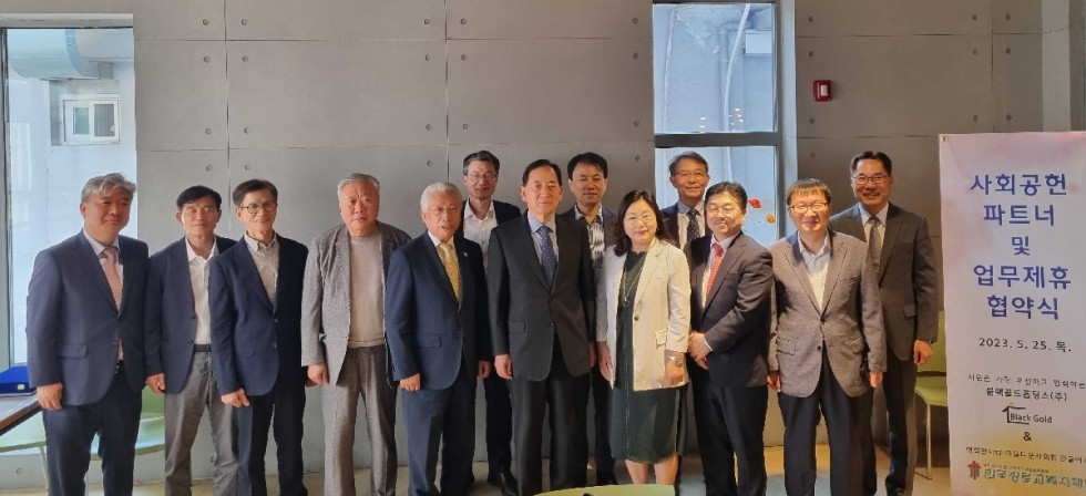 우리 법인은 2차 이사회 석상에서 자산중개전문기업 블랙골드홀딩스(주)와의 사회공헌 파트너 및 업무제휴 협약을 하는 순서를 가졌다.