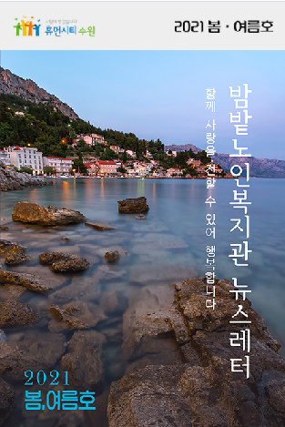 밤밭노인복지관 뉴스레터 2021 봄, 여름호 작성일2021.07.30 조회수3,109 작성자한국장로교복지재단 본문 http://www.storysend.co.kr/bbs/board.php?bo_table=send_view&wr_id=8339&page=1